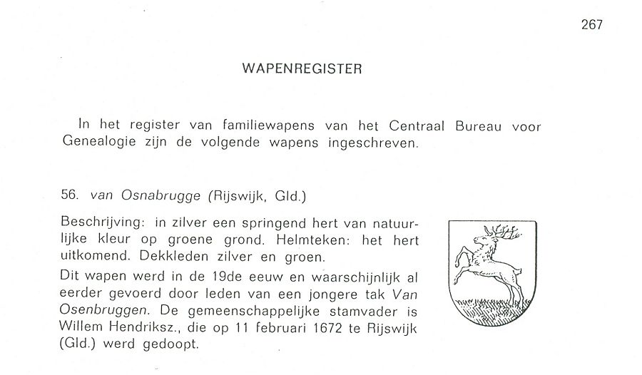 Reasearch carried out by Margarethus van Osnabrugge. Published in "Genealogie Van Osenbruggen-Van Osnabrugge; Gens Nostra 38 (XXXVIII) 1983 pag. 213 e.v.