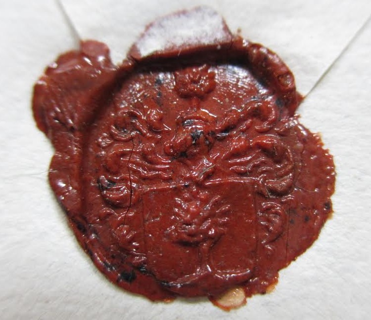 He signed his letters with a seal showing a tree on the shield and a rose as crest. Click images on the right to enlarge and view his actual stamped seal and a clearer worked-out graphic.